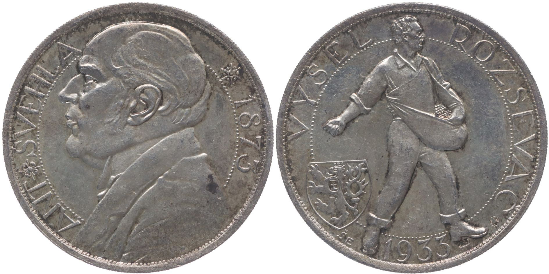 Antonín Švehla - Vyšel rozsévač, 1933 Poprsí zleva, opis / rozsévač, český znak, opis, Sign., Punc. 987, Ag 30 mm, 10.01 g, PŠ.140, Boh.96c
