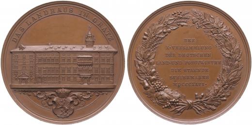 Graz (Štýrský Hradec) - na 10.setkání něm.zemědělských a lesnických hospodářů 1846, pohled na zemský dům v Grazu, opis / 7řádk.něm. text ve věnci, Sign.K.Lange, Cu 49 mm, Ho.6242, Un.1851
