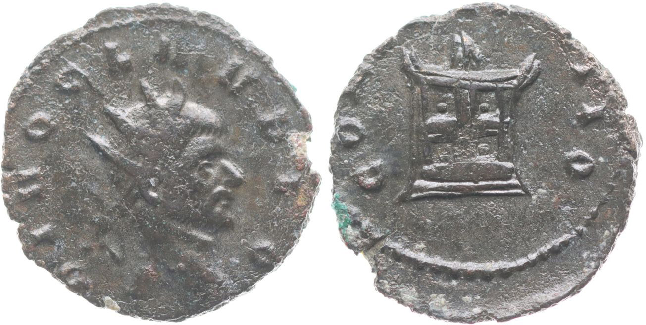 AE Antoninianus, Rv:"CONSECRATIO." oltář, S.3128, Kamp.104.74.2 RIC.261