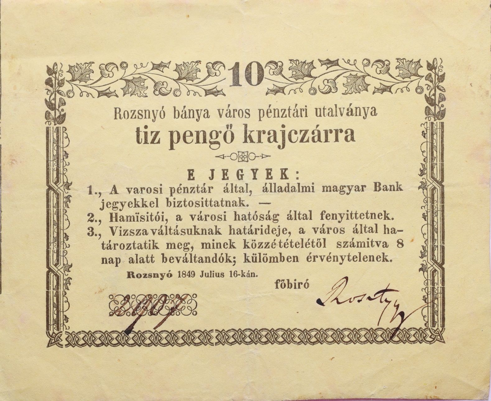 Rožňava (Rozsmyó) - 10 Krejcar 16.7.1849, č.2907, Vizsza Adam.Roz.1.4.4