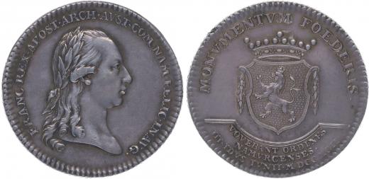Medaile na holdování v Namuru, 1792#Ag Portrét zprava, opis / korunov.znak, opis, 3řádk.nápis v úseči Nesign., Ag 34 mm, 12,72 g, Nov.XVII/F-1b, Ho.3331_R!