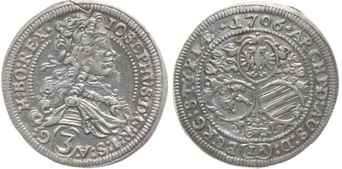3 Krejcar 1706, Št.Hradec-Aigmann, M-A.205, Her.186