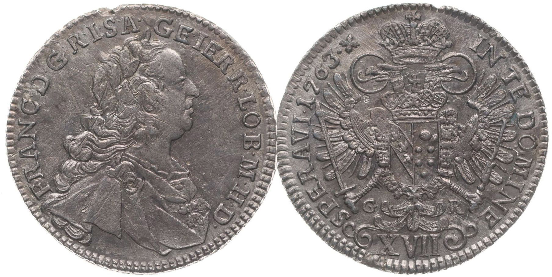 XVII Krejcar 1763 G-R, Graz, N.9, Her.371_R!