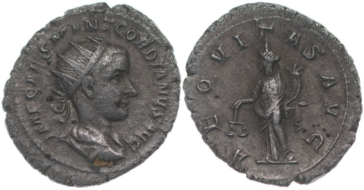 AR Antoninianus, Rv:"AEQUITAS AVG.", stojící Aequitas zleva K.72.5, S.2327, C.17, RIC.34
