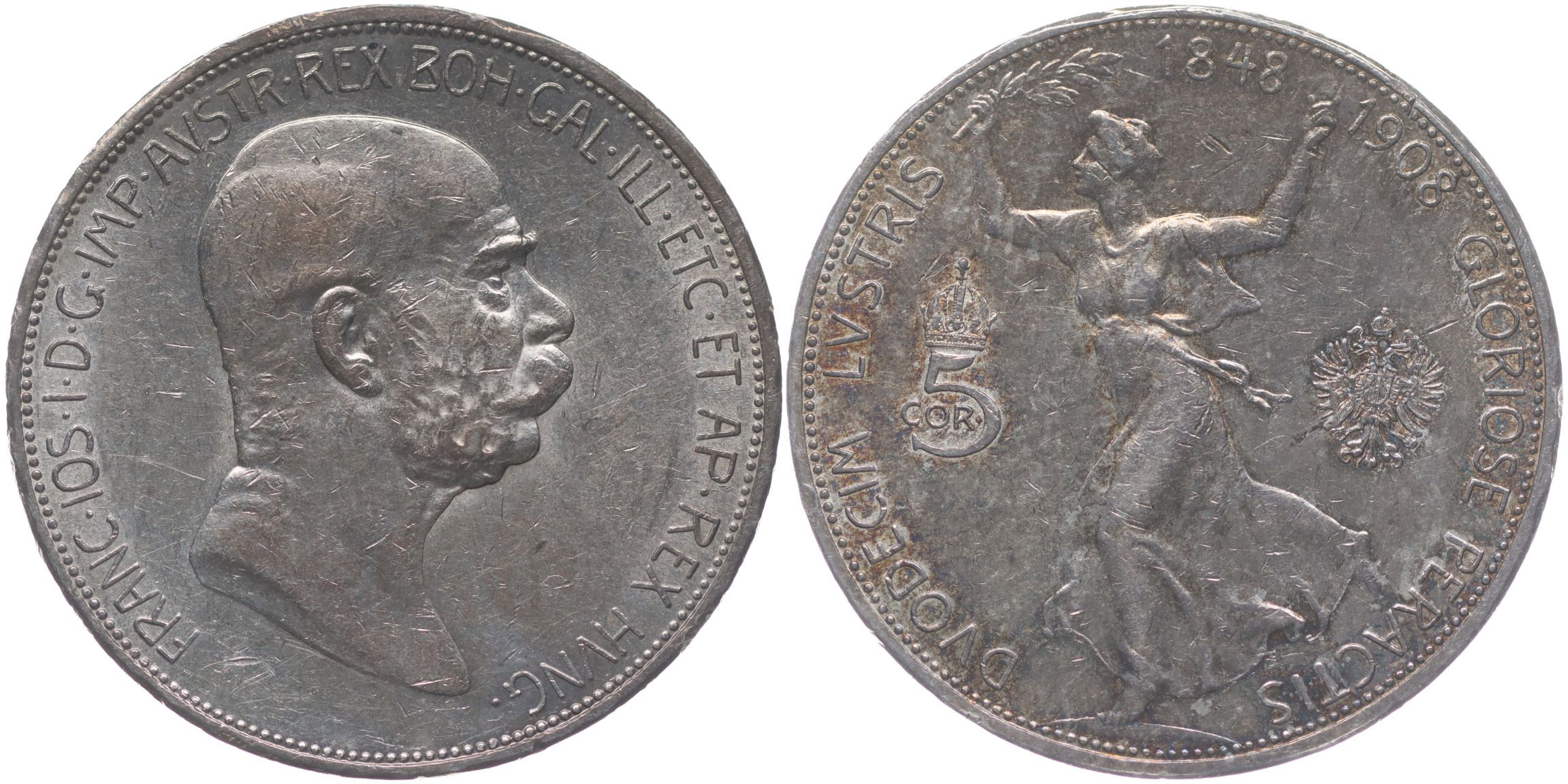 5 Koruna 1908 b.zn. - jubilejní