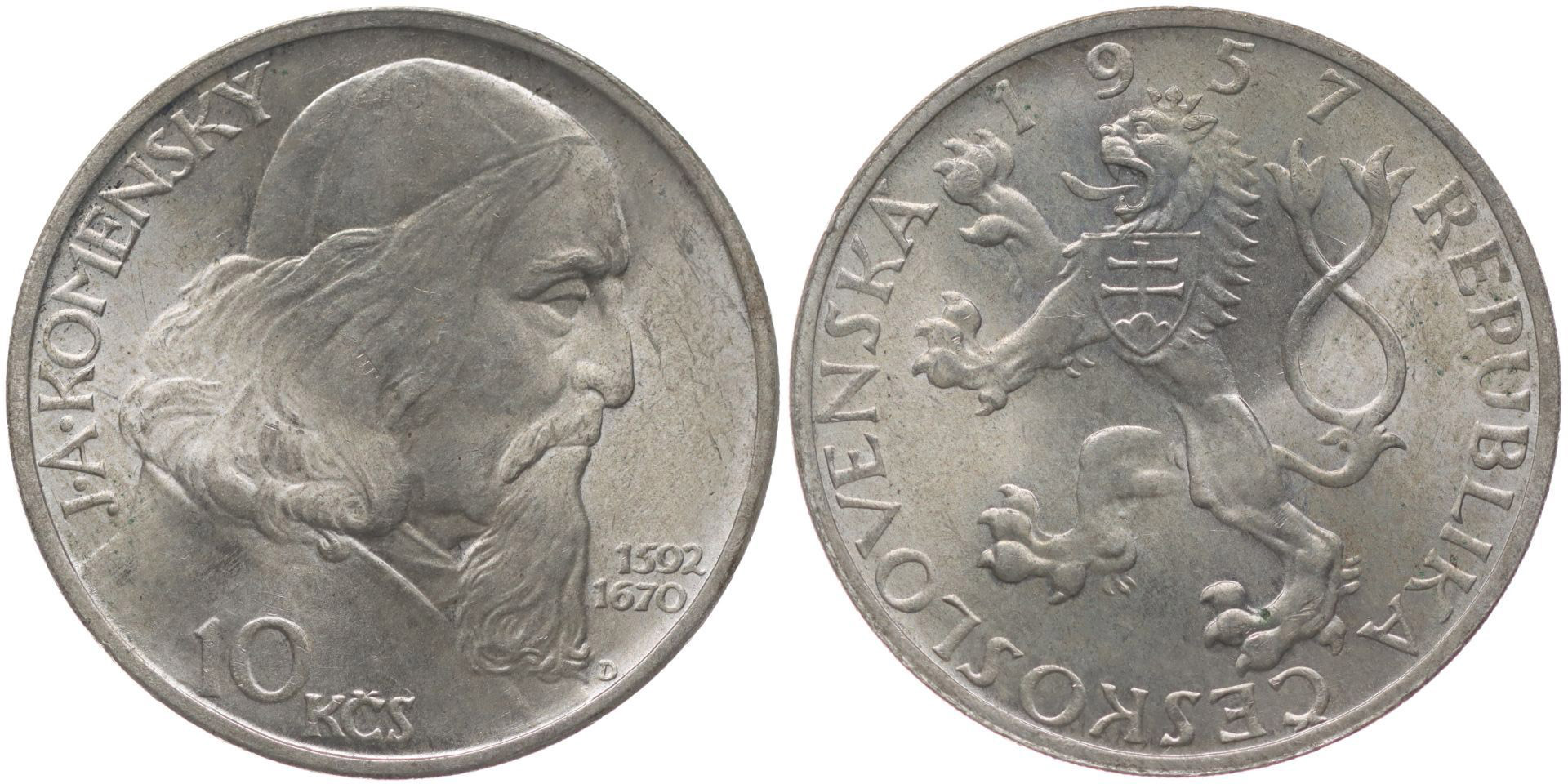 10 Kčs 1957 - Komenský, var. lev bez penisu_R!
