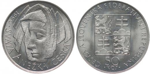 50 Kčs 1990 - Sv.Anežka (bez signatury autora)_R!