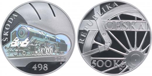 500 Kč 2021 - Parní lokomotiva Škoda 498 _orig.etue + kapsle + certifikát
