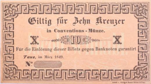 Domažlice (Taus) - 10 Kr.C.M. III.1849, Jacob Schnabl bez čísla a podpisu, V-R.1310.06.02