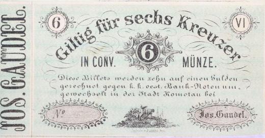Chomutov (Komottau), 6 Krejcar C.M., b.l., Jos.Gaudel bez čísla a podpisu, VR.220.05.03