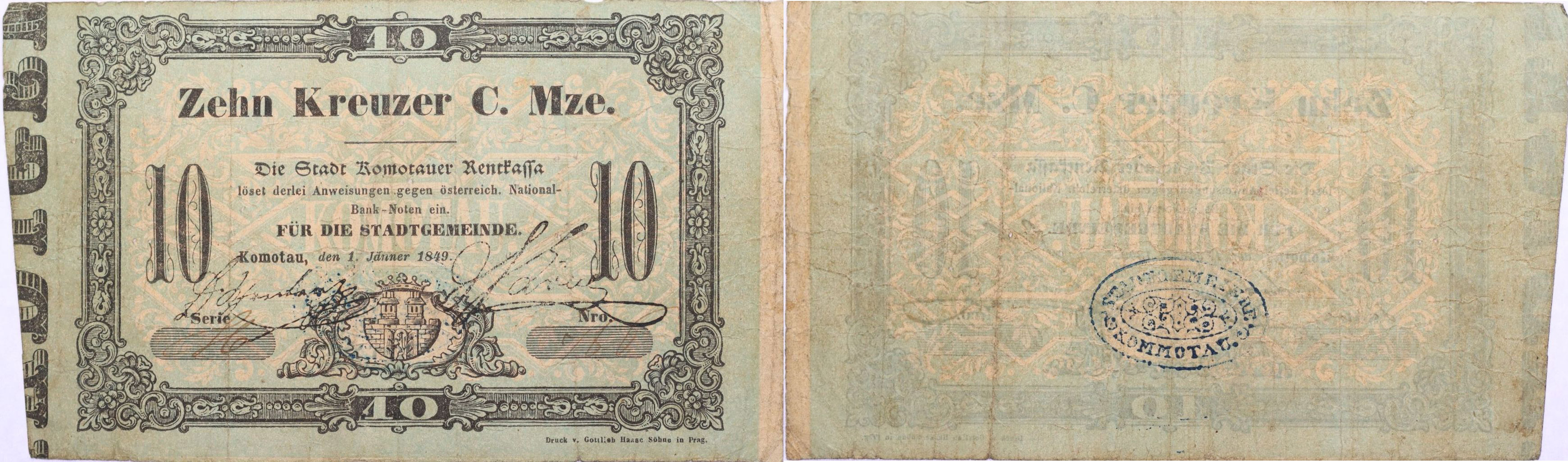 Chomutov (Komottau), 10 Krejcar 1.1.1849, Stadtgemeinde sér.H, čís.:766, VR.220.19.01.b.I