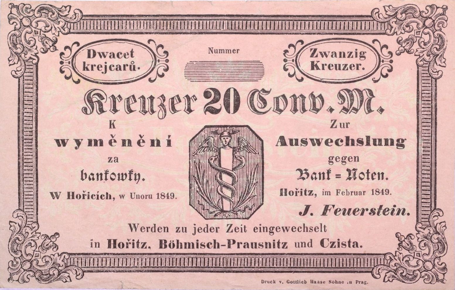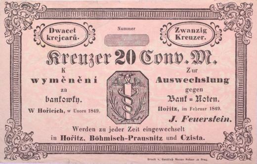 Hořice (Hořitz) - 20 Kr.C.M. II.1849, J.Feuerstein bez čísla, V-R.515.02.03_2x natrž.1-2 mm