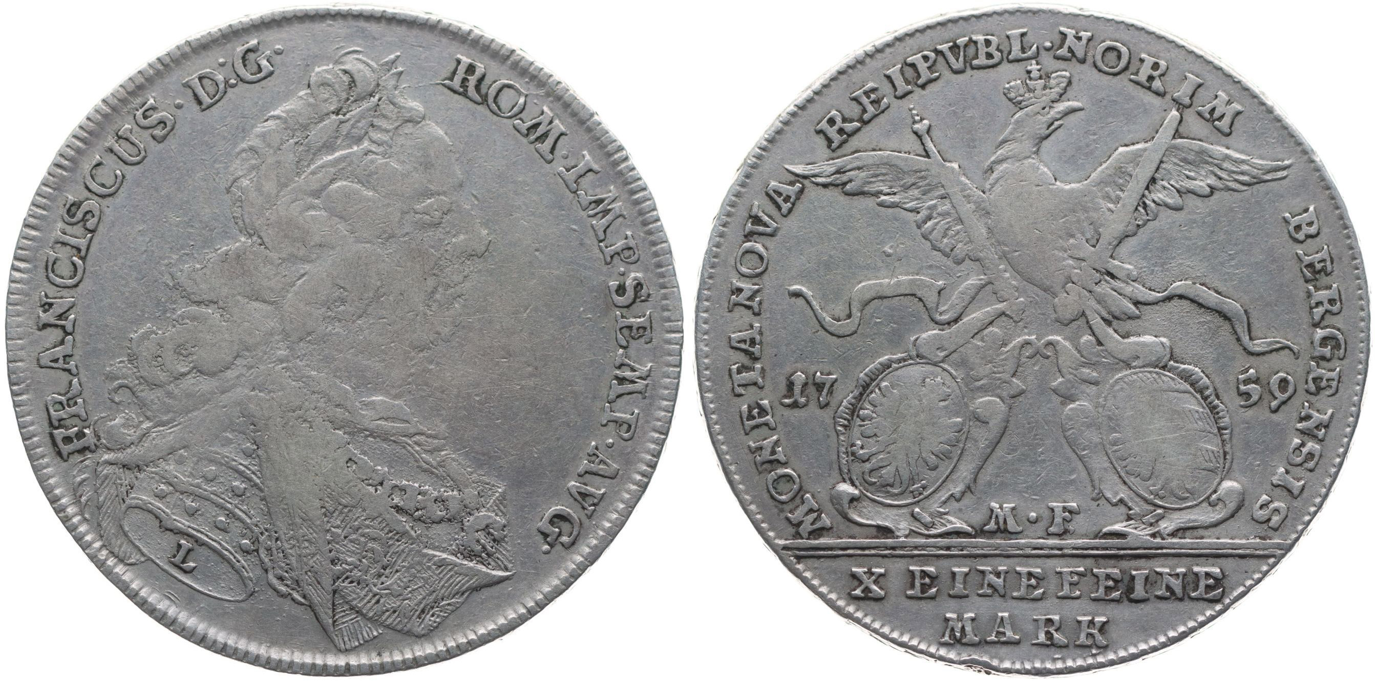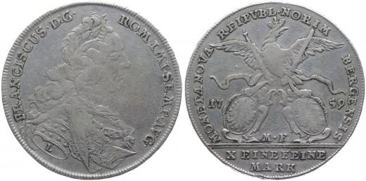 Tolar 1759 M.F. - s tit. Frant.Lotrinského, korunovaný orel drží dva znaky / císař zprava, opis, Sch.44, Cr.73, Dav.2485, KM.73
