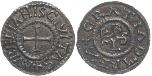 Denár, rev. CIVITAS AVRELIANSIS (Orleans ve Francii), Gr.881 _2 staré podložní lísttky RR!
