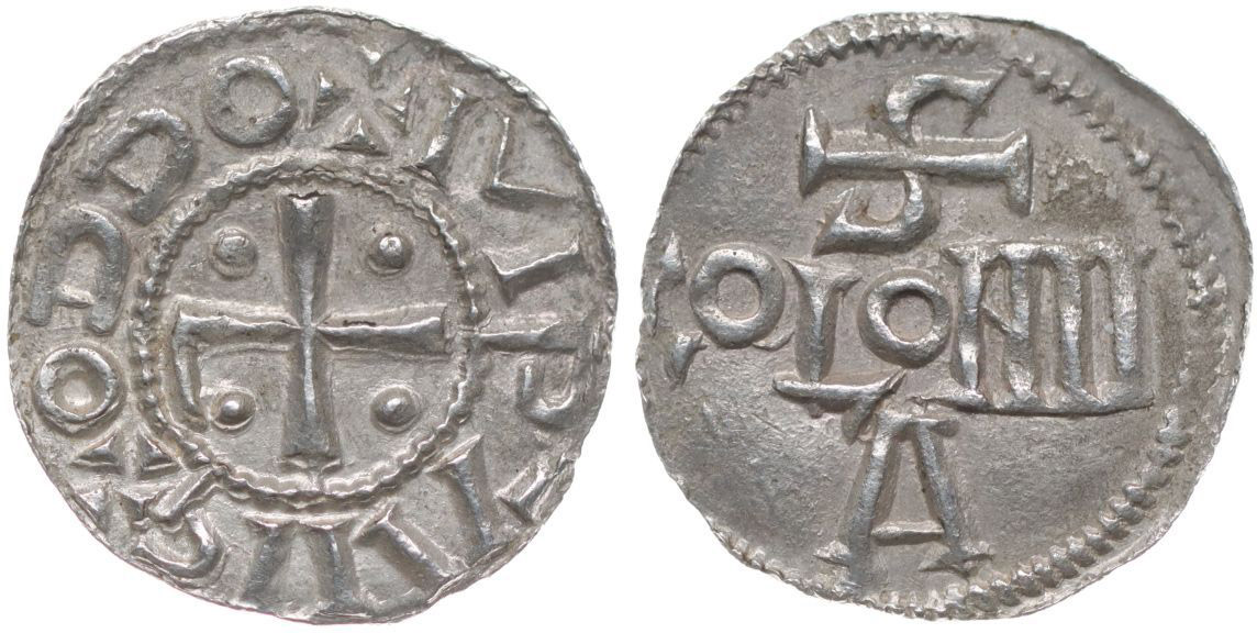 Denár ( z let 983 - 996), kříž se 4 kuličkami / COLONII-A minc.Kolín n.R., Bonh.1544, Dann.334a, Häv.62_R!