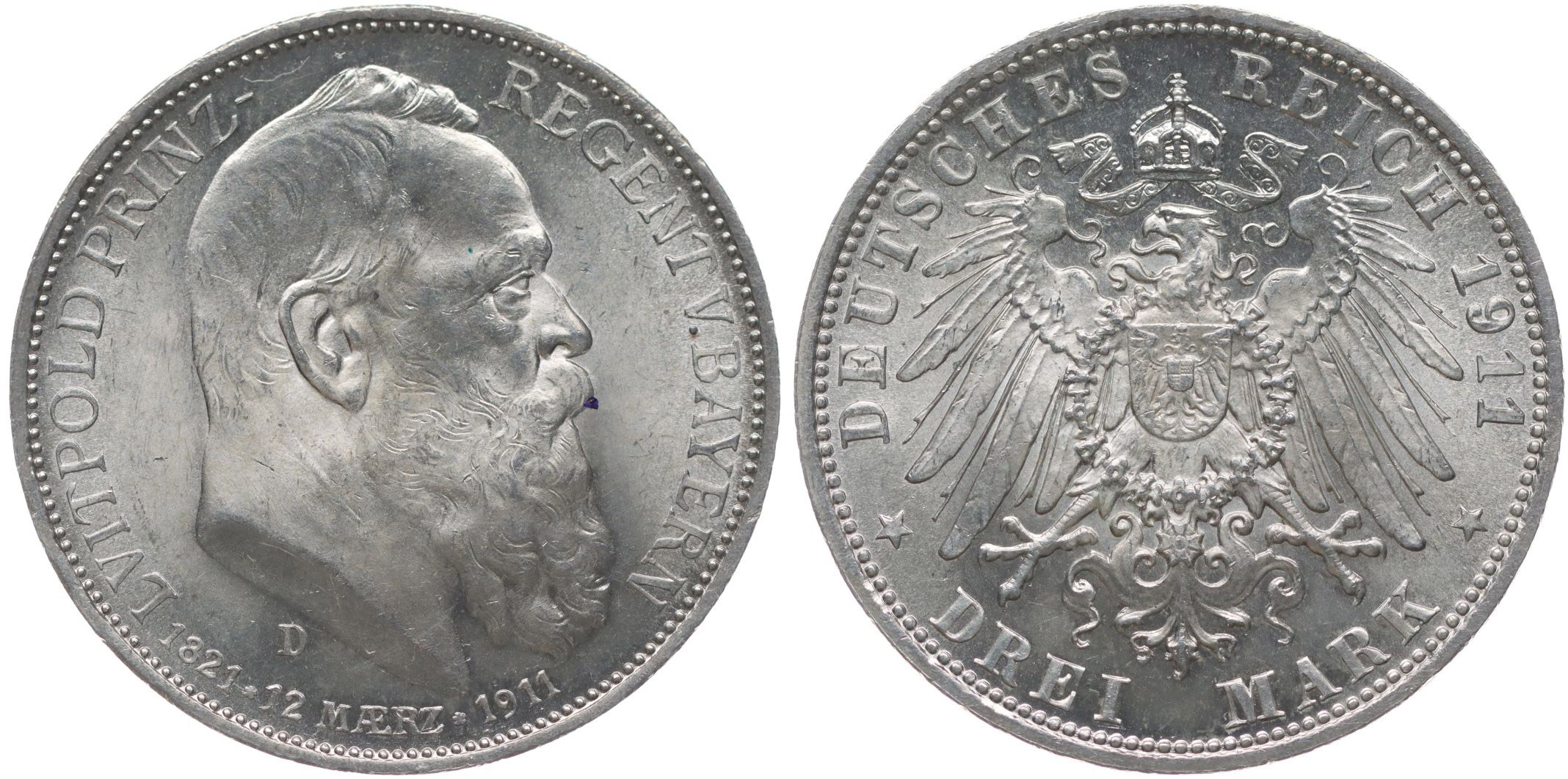 3 Marka 1911 D - 90.narozeniny, KM.517, J.49