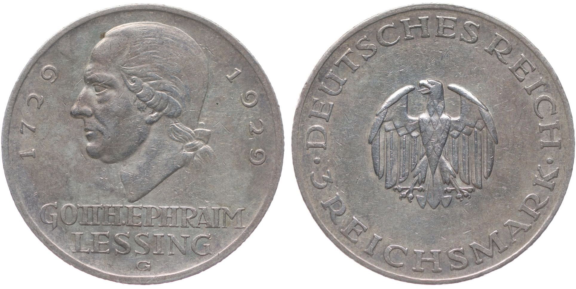 3 Marka 1929 G - Lessing, KM.60, J.335