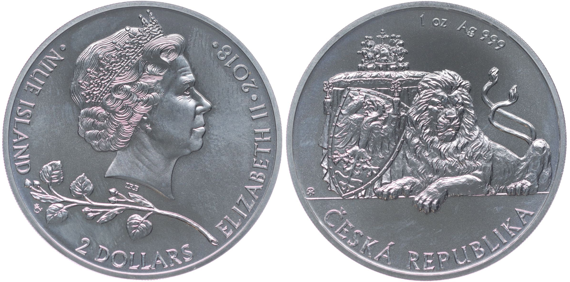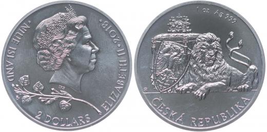 2 Dolar (unce) 2018, v rev. český lev, opis Česká republika, Punc.999 Ag 37 mm, 31,24 g (unce) _orig.kapsle