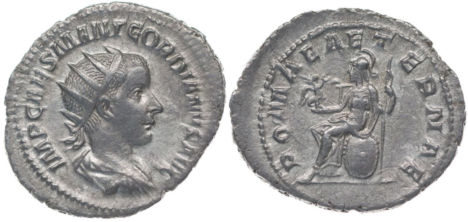 AR Antoninianus, Rv:"ROMAE AETERNAE", sedící Roma zleva K.72.44, S.2359, C.312, RIC.38