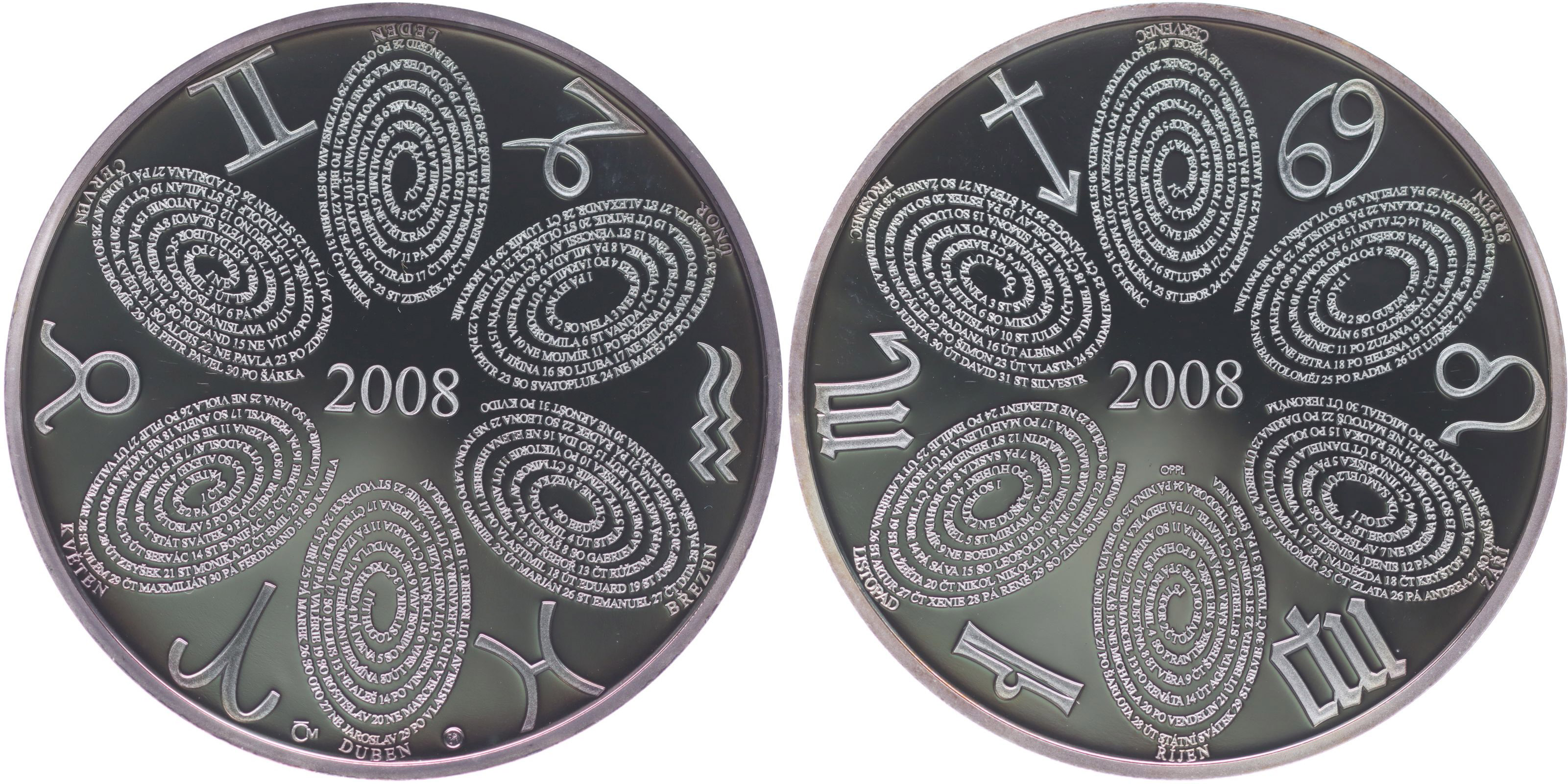Kalendář 2008, emise 2007 Sign., Punc.999 Ag 50 mm, 42 g_orig.etue + kasple + certifikát