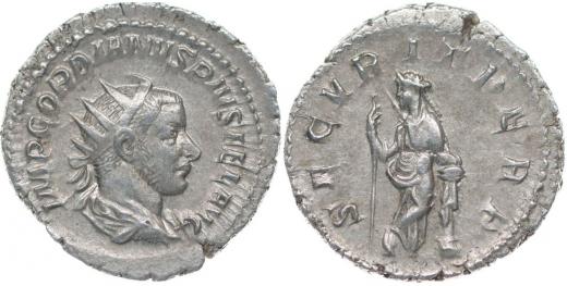 AR Antoninianus, Rv:"SECVRIT.PERP.", stojící Securitas zleva K.72.47, S.2361, C.327, RIC.151