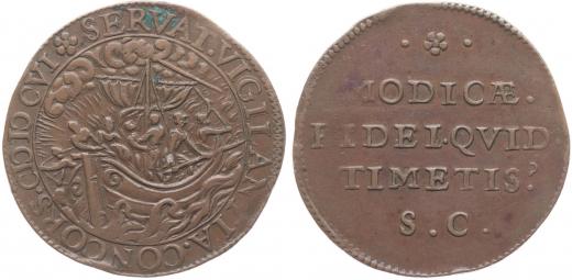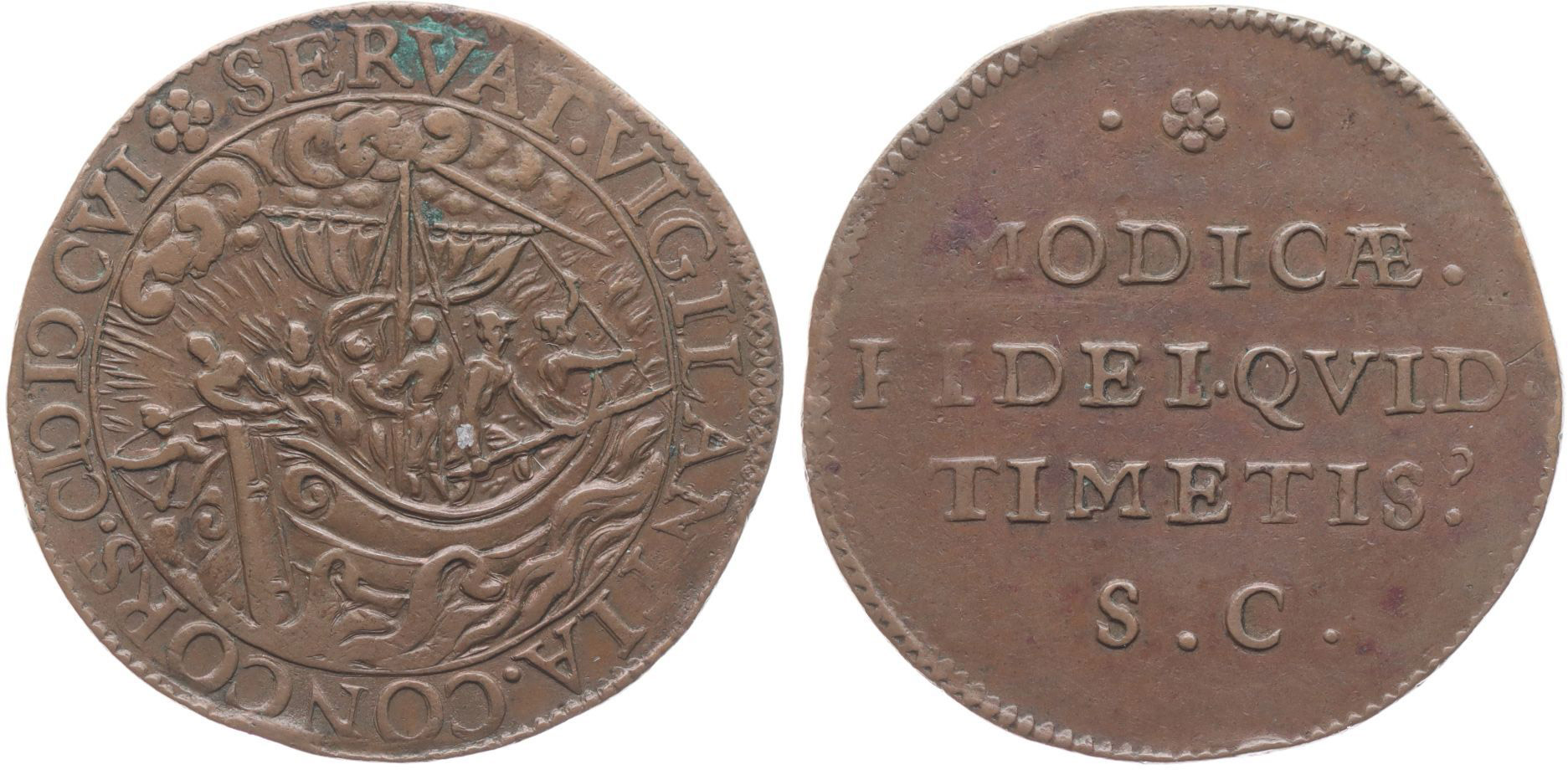 Nesign. - porážka Nizozemců Portugalci, 1606 Loď zmítaná bouří, opis / čtyřřádkový nápis Cu 30 mm, van Loon.II/24, Dugn.3611_R!
