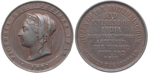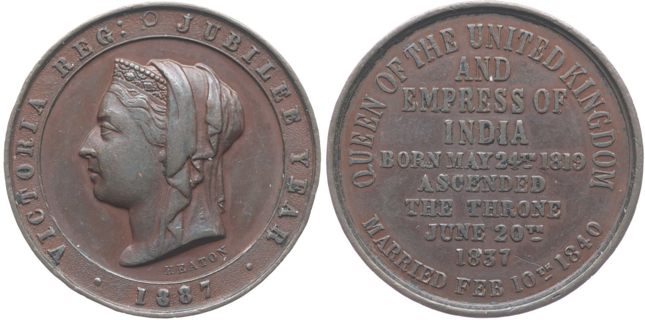 Victoria - pamětní medaile k jubileu 50 let vlády 1837 - 1887 Poprsí královny zleva / 8řádk.nápis, opis s životopisnými daty Sign.Heaton, Bronz 32 mm, 11,32 g
