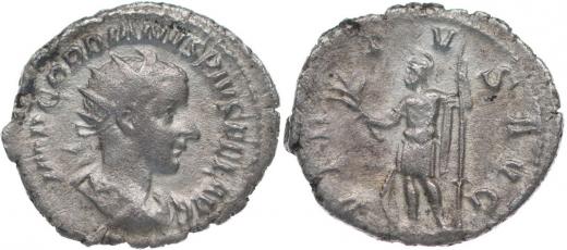 AR Antoninianus, Rv:"VIRTVS.AVG.", stojící Mars zleva s olivovou ratolestí, K.72.55pod., S.2366, RIC.39, C.383