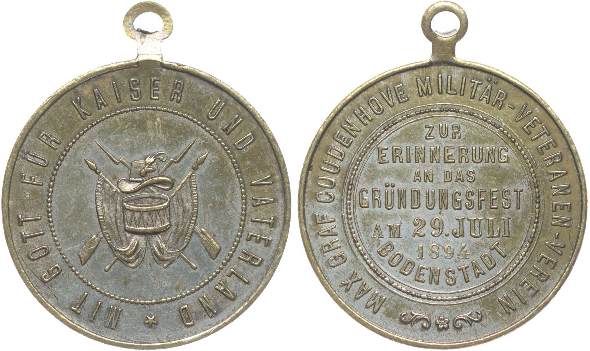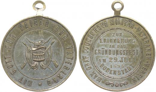 Potštát (Bodenstadt) - v upomínku na slavnost spolku veteránů pod patronací Maxe Graf Coudenhove 29.7.1894, vojenské atributy, opis / 7řádk.nápis, opis, Postř.mosaz 31 mm_orig.raž.ouško