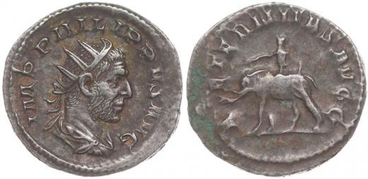 AR Antoninianus, Rv:"AETERNITAS.AVGG.", kráčející slon zleva, K.74.3, S.2452, C.17, RIC.58 - mincovna Řím - ražba z let 247-249