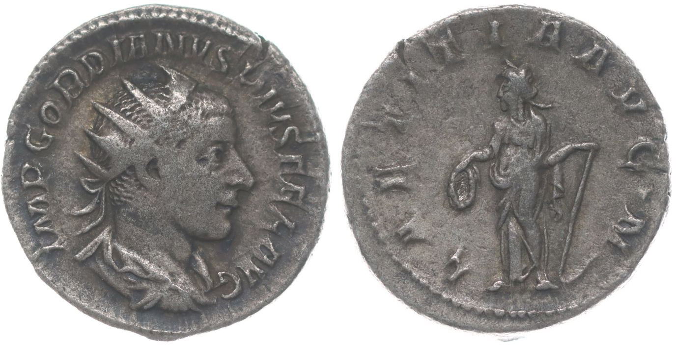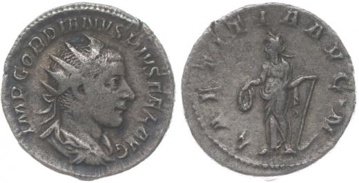 AR Antoninianus, Rv:"LAETITIA.AVG.N.", stojící Laetitia zleva Kamp.72.19, S.2338, C.121, RIC.86