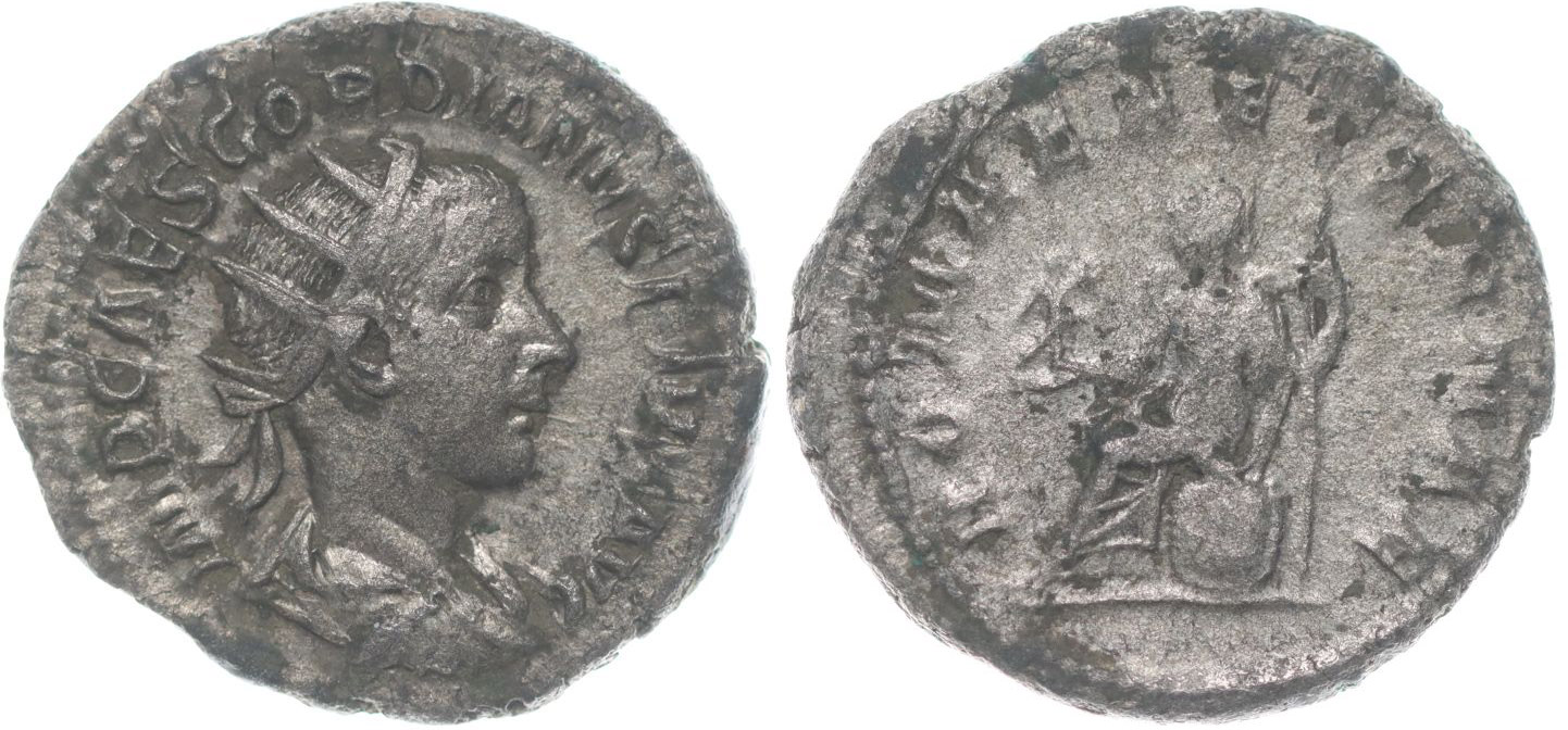 AR Antoninianus, Rv:"ROMAE AETERNAE", sedící Roma zleva K.72.44, S.2359, C.312, RIC.38