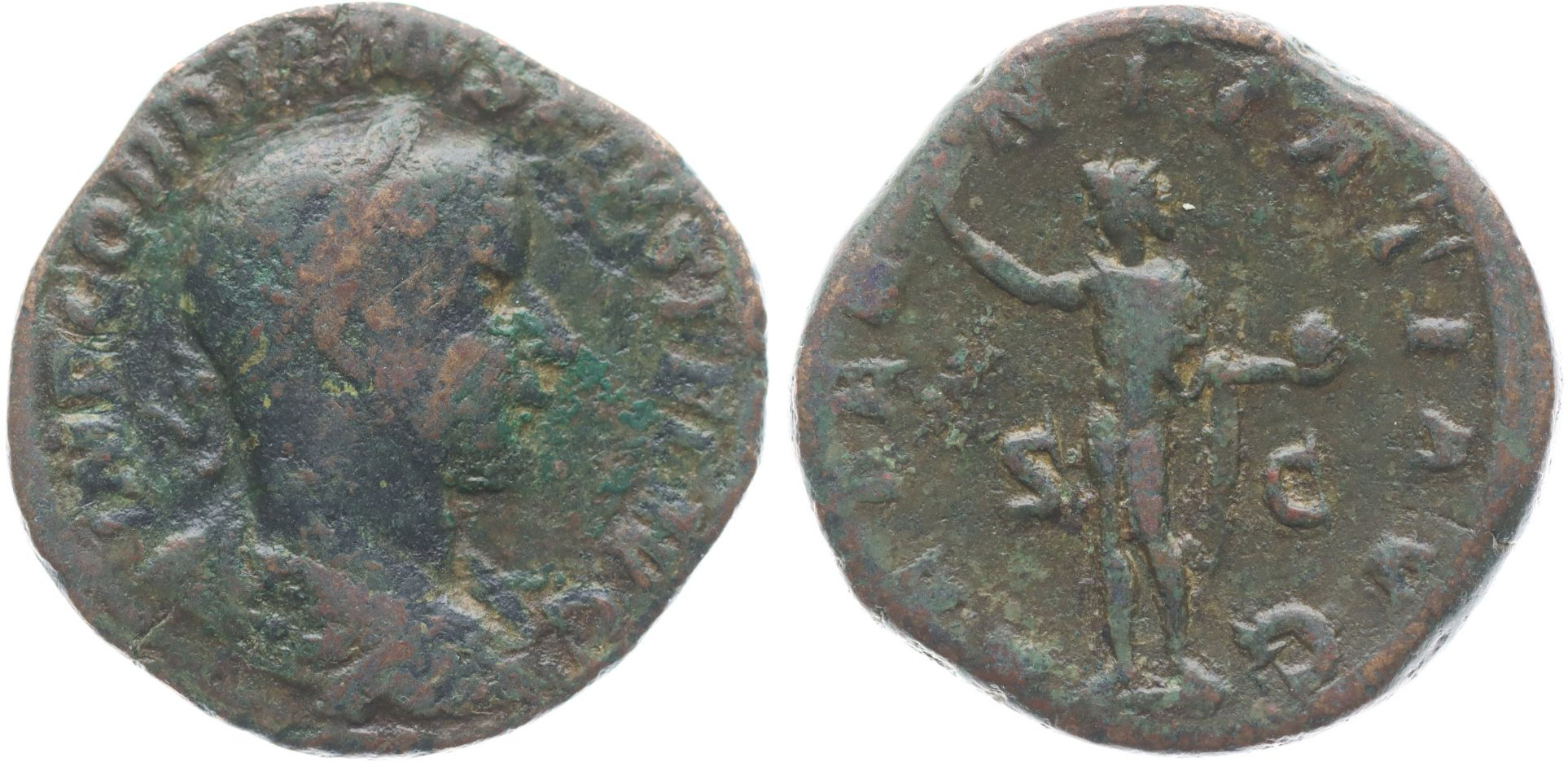 AE Sestercius, Rv:"AETERNITATI AVG.", stojící Sol zleva, K.72.61, S.2382, C.43, RIC.297