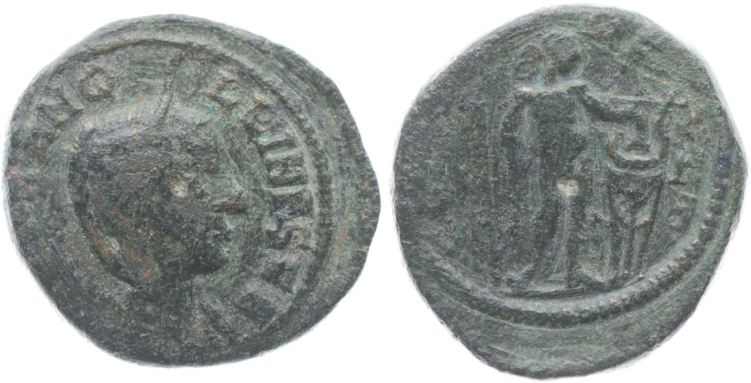 AE 22 mm, Rev.: stojcí postava zprava před trojnožkou, SGI.3810pod.