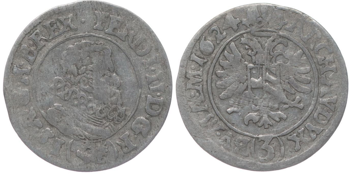 3 Krejcar 1624, Praha-Suttner, J.27b, MKČ.759, Her.1142