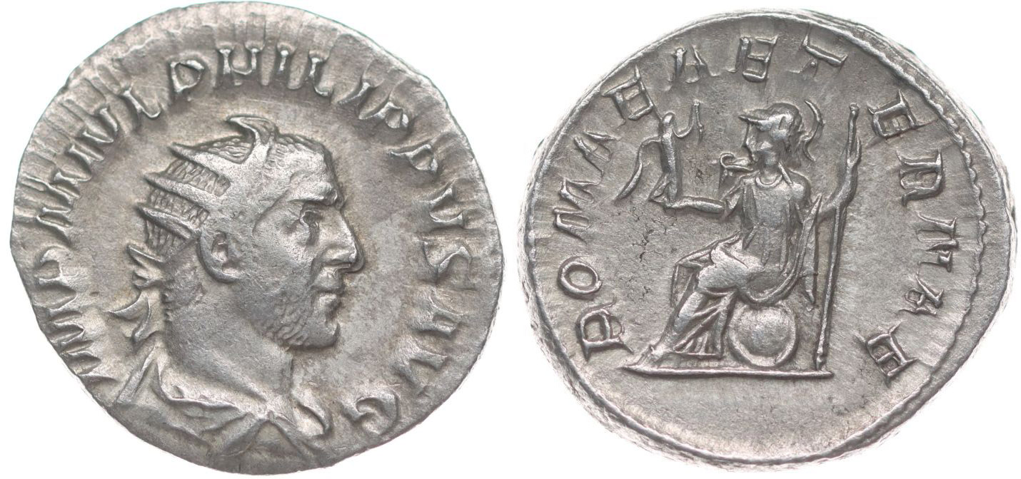 AR Antoninianus, Rv:"ROMAE.AETERNAE.", sedící Roma zleva, K.74.21, S.2467, C.169, RIC.44f