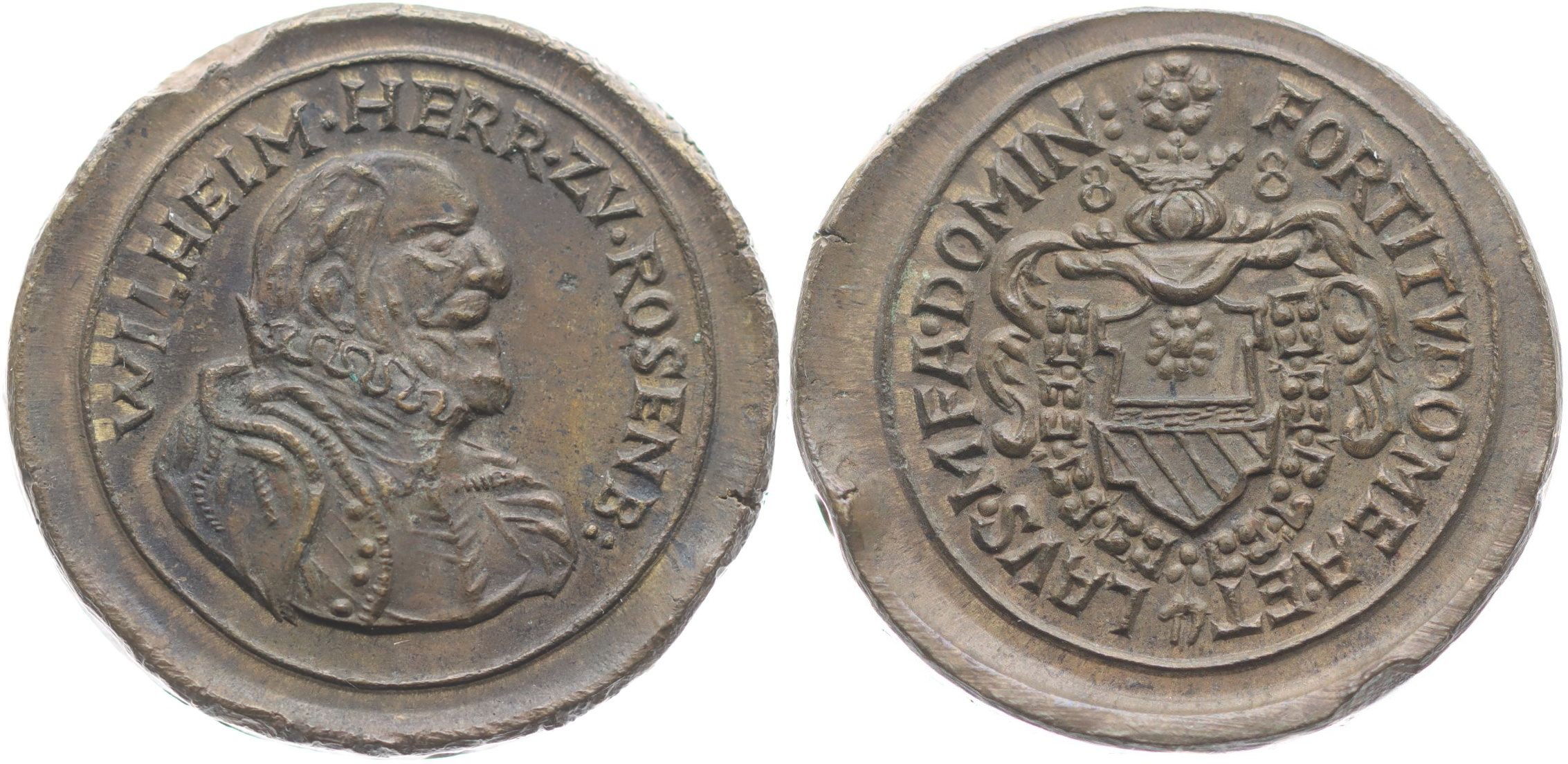 Jarmareční suvenýr b.l., poprsí zprava, opis / velký rodový znak, opis 1588 n(zkrác.let.88), raž. v Českých Budějovicích, Cu 35 mm, 34.59 g, Kl.Hol: NM 2006/56