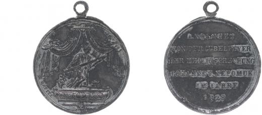 Sarkofág svatého Jana Nepomuckého / 6řádk.něm.#Sn nápis, 1829, Sn 34 mm, Př.585, jakoGr.78 (český opis)_orig.raž.ouško