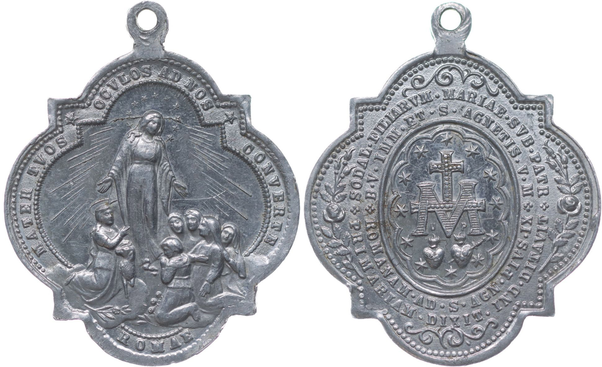 Praha u sv.Ignáce b.l. - sv.Anežka Římská s dětmi, opis / mariánský mnogram, opis, Al 30x37 mm, 2,77 g, Přib.432_orig.raž.ouško