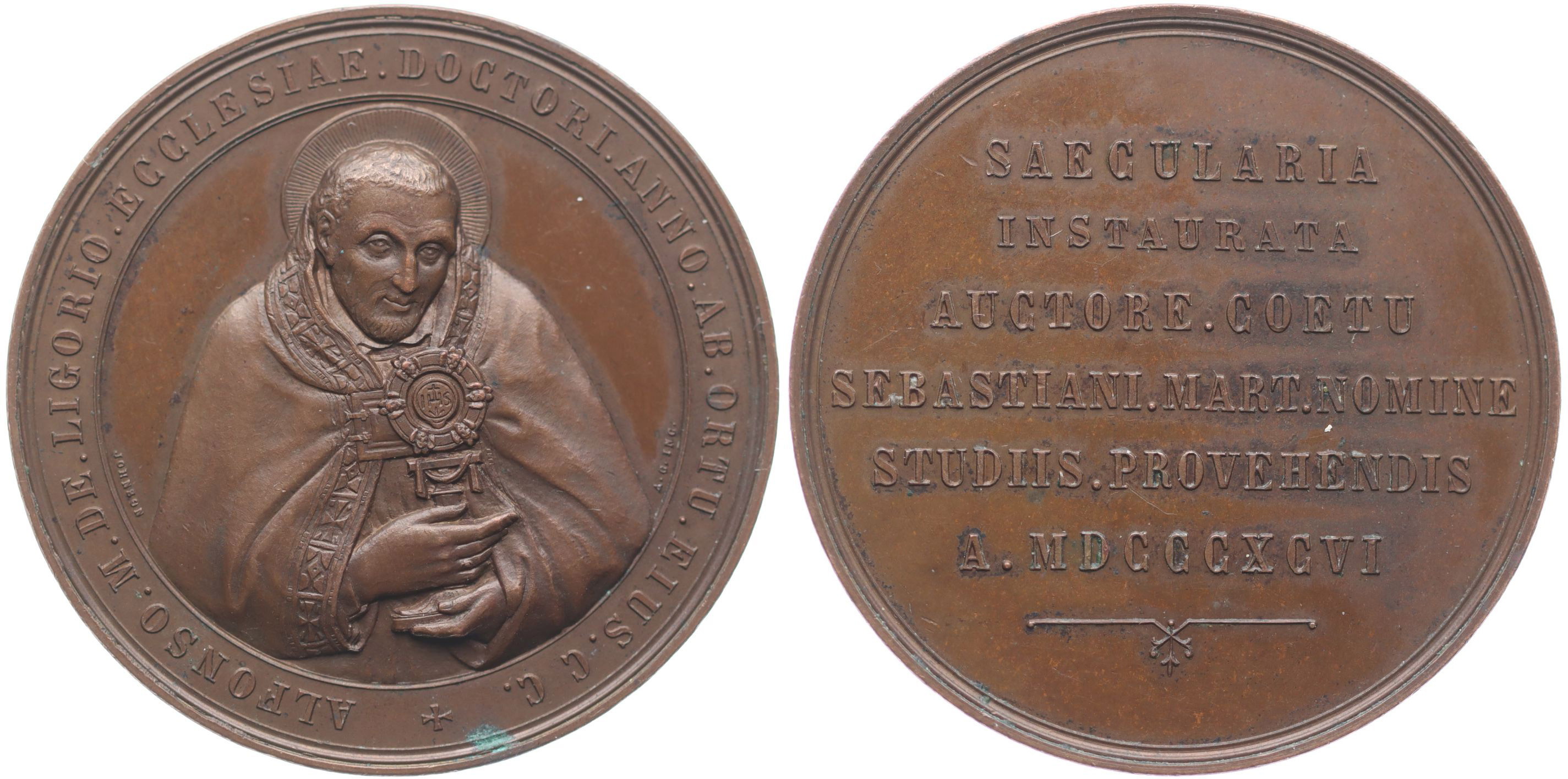 Sv.Alfons z Liguori - na památku 200.výr.narození 1696 - 1896 Poprsí sv.Alfonse čelně, opis / 6řádk.nápis, Sign.Johnson a.c.inc. Bronz 44 mm