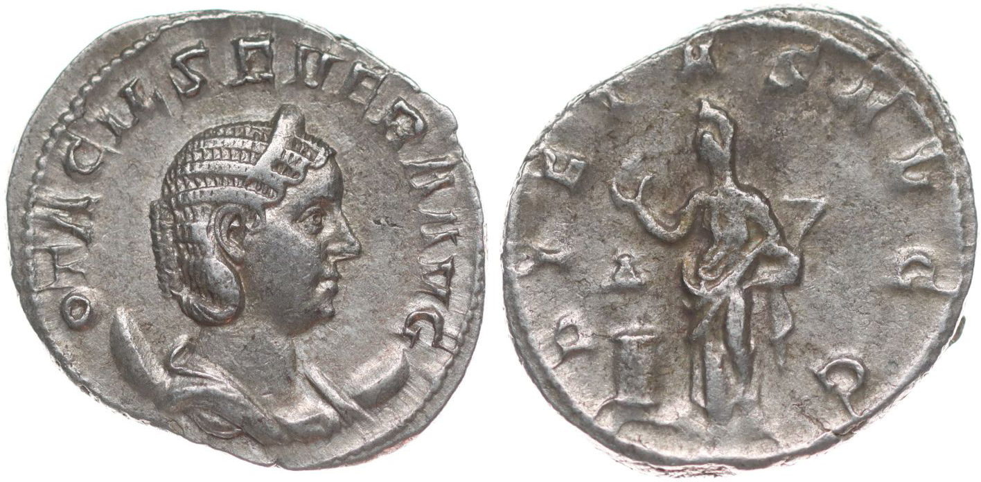 AR Antoninianus, Rv:"IVNO CONSERVAT", stojící Juno drží pateru, S.2528, C.20