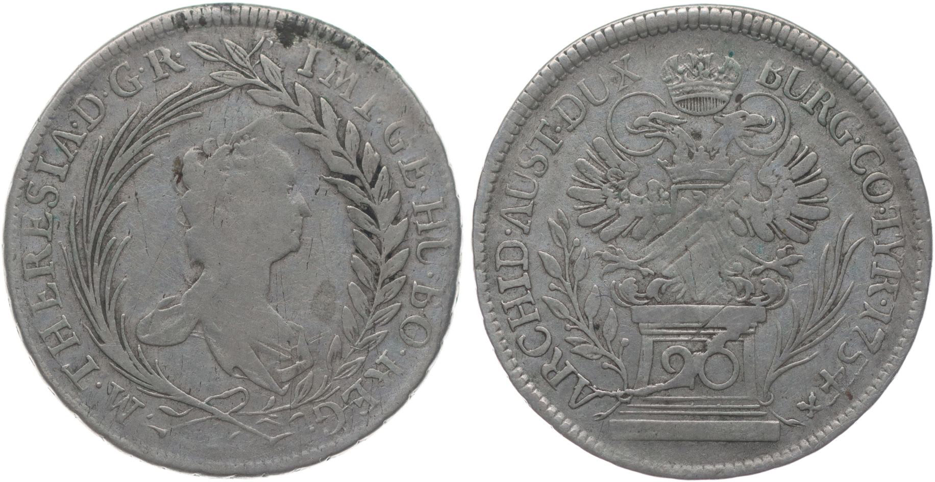 20 Krejcar 1754, Vídeň, Nový.30_dr.just. v rev.