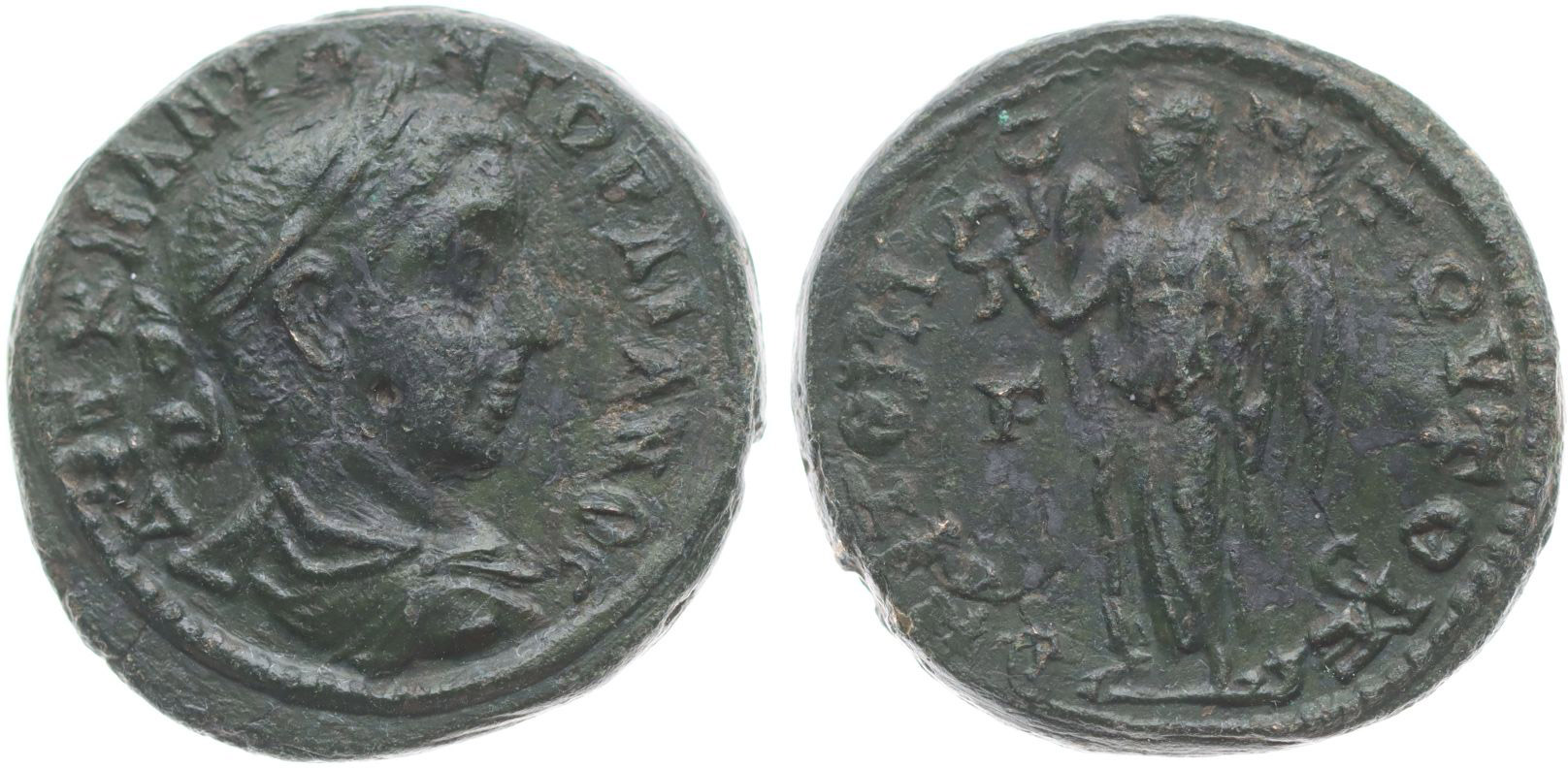 AE 28 mm (5 Assaria), Av: Gordianus zprava, opis / Nike stojící zleva, opis, SGI.3643