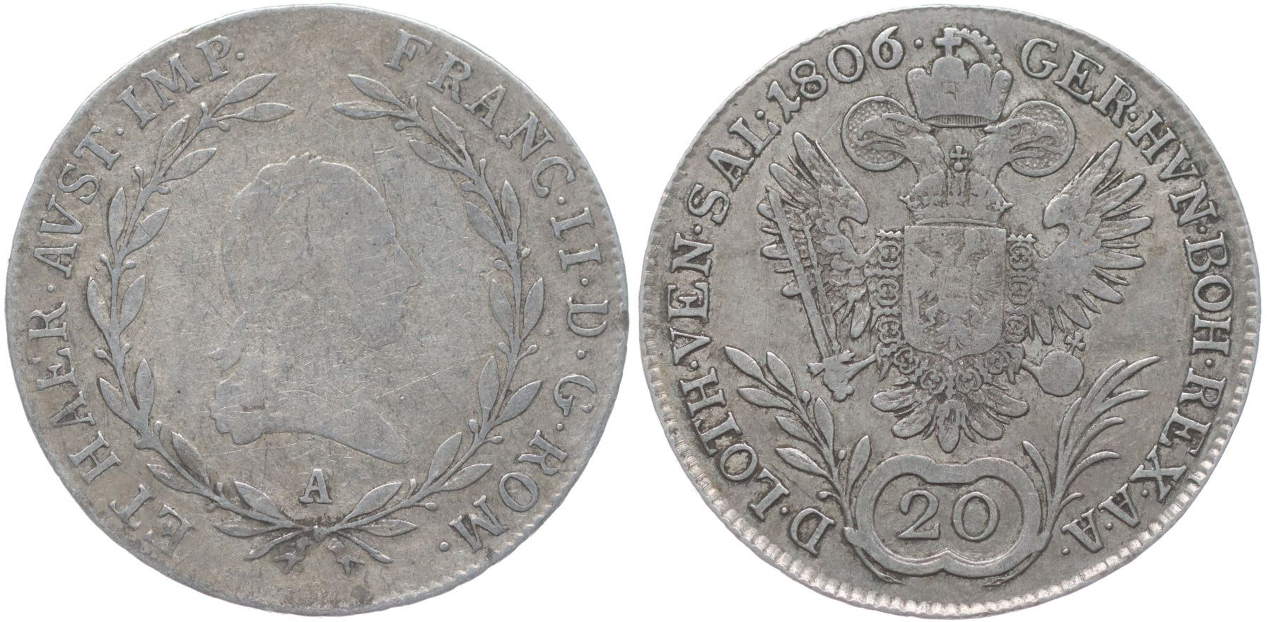 20 Krejcar 1806 A - s říšskou korunou a tituly