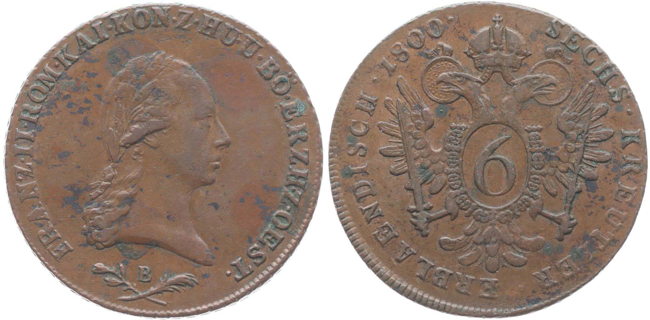 Cu 6 Krejcar 1800 B, minc.Kremnice