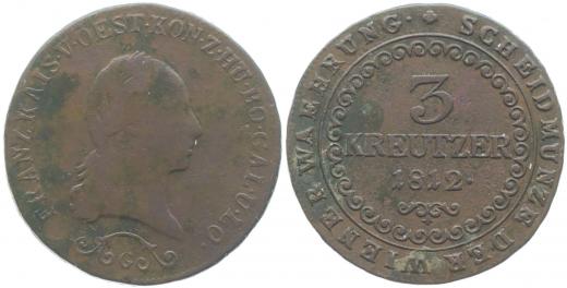Cu 3 Krejcar 1812 G, minc.Velká Baňa_R!