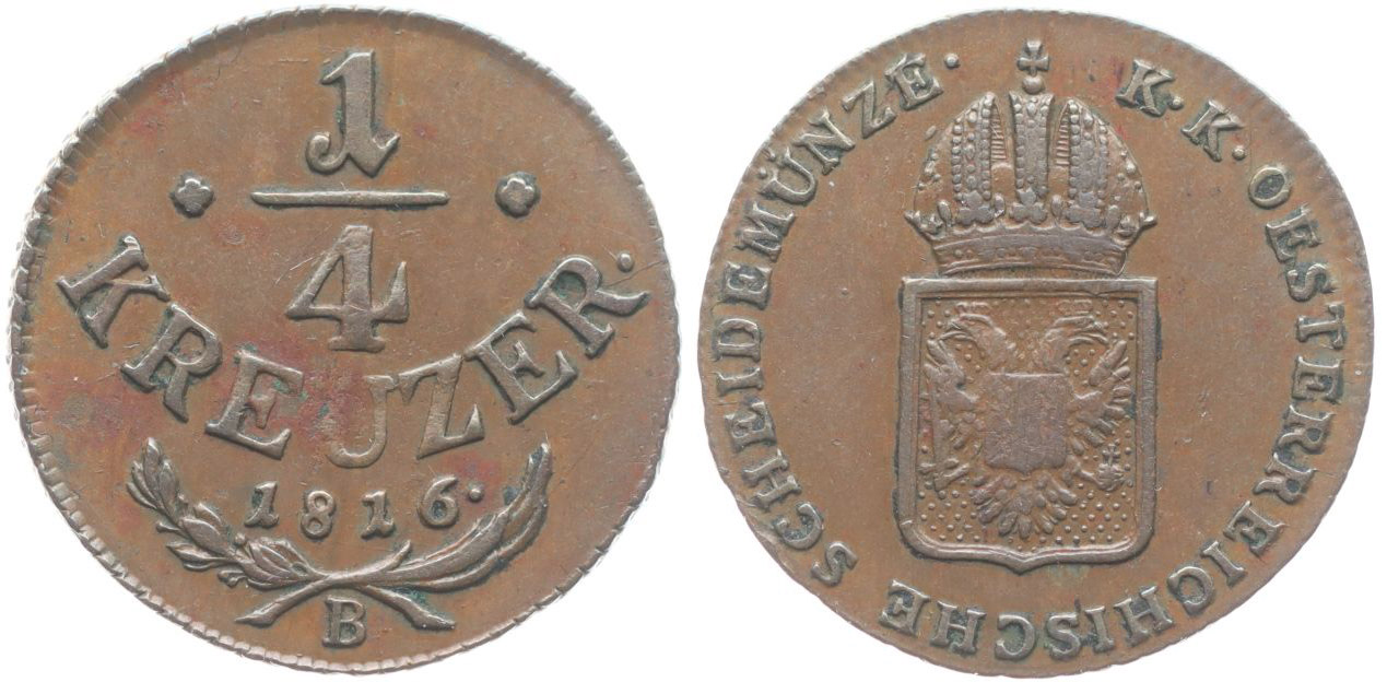 Cu 1/4 Krejcar 1816 B, minc.Kremnice