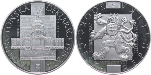 500 Kč 2018 - 100.výr.Washingtonské deklarace _orig.etue + kapsle + certifikát