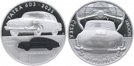 500 Kč 2023 - osobní automobil Tatra 603 _orig.etue + kapsle + certifikát
