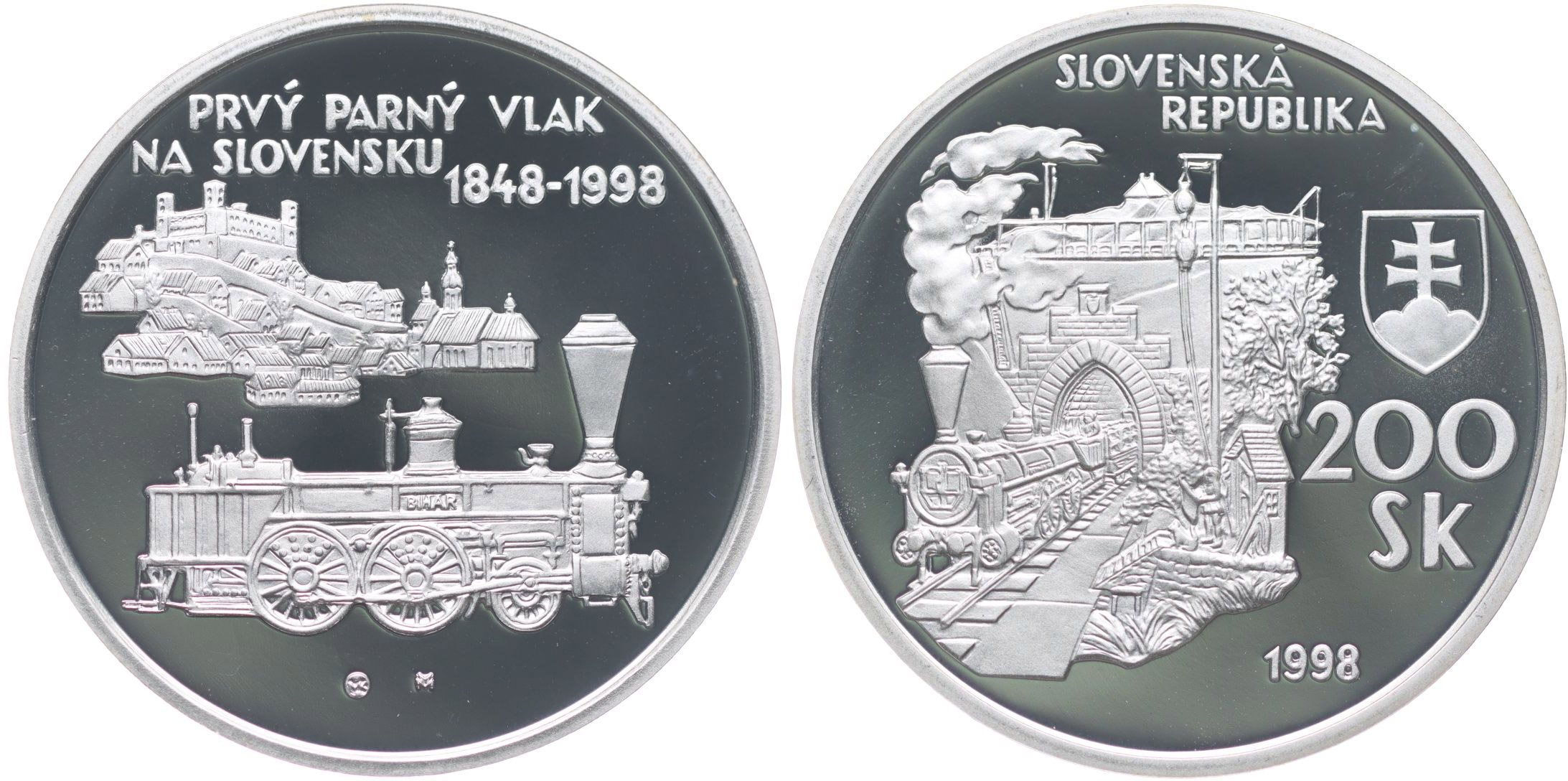 200 Sk 1998 - 150 let železnic na Slovensku, Aurea.S32 _orig.etue + kapsle + certifikát